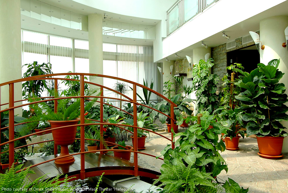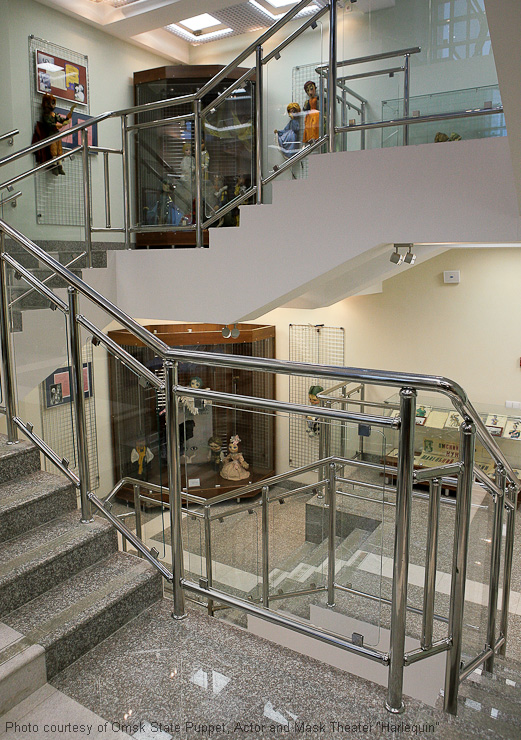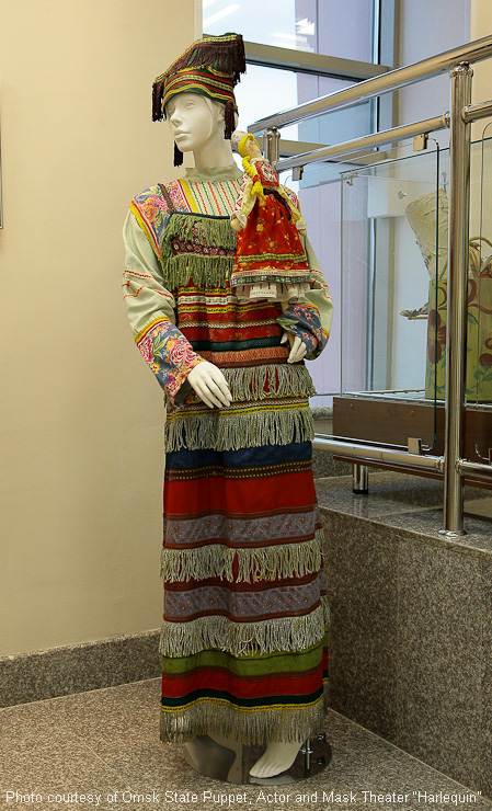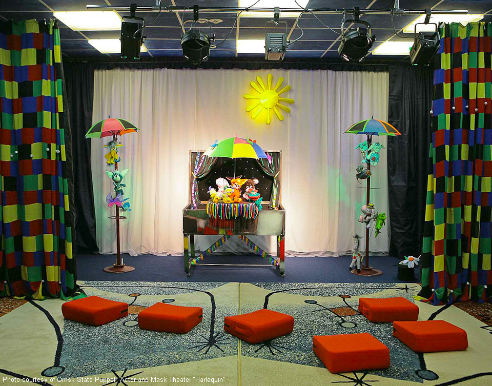 Omsker staatliches Theater für Puppen, Schauspieler, Maske „Harlekin“. Außen- und Innenausstattung