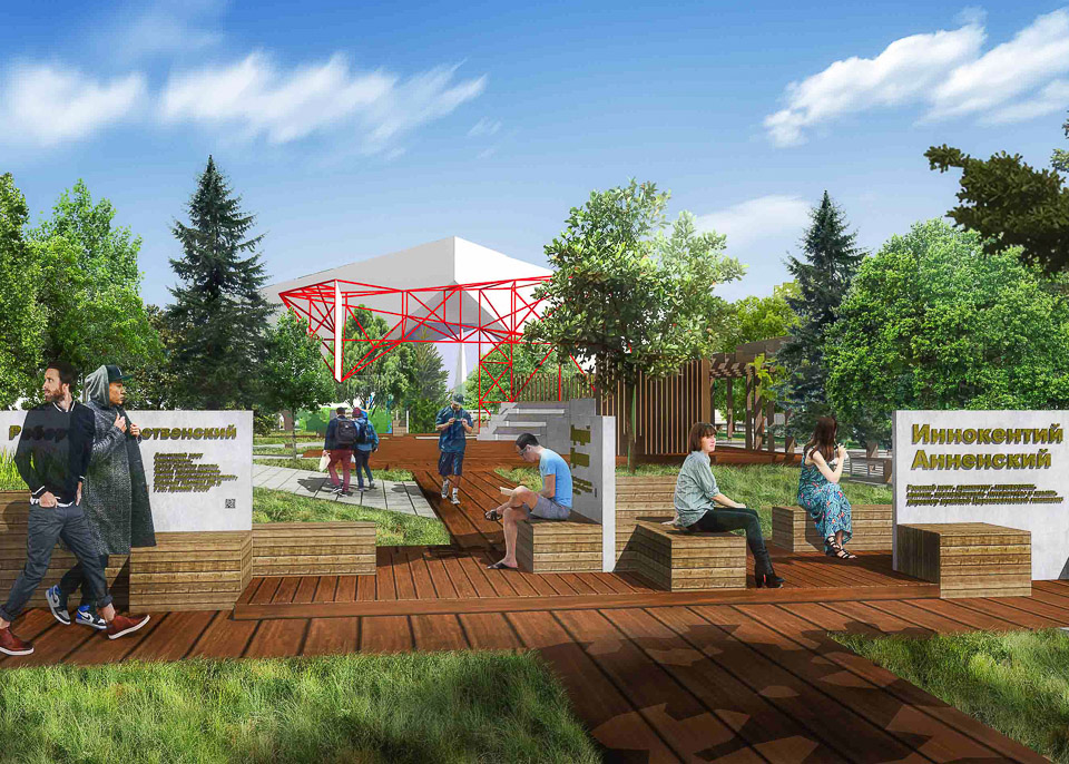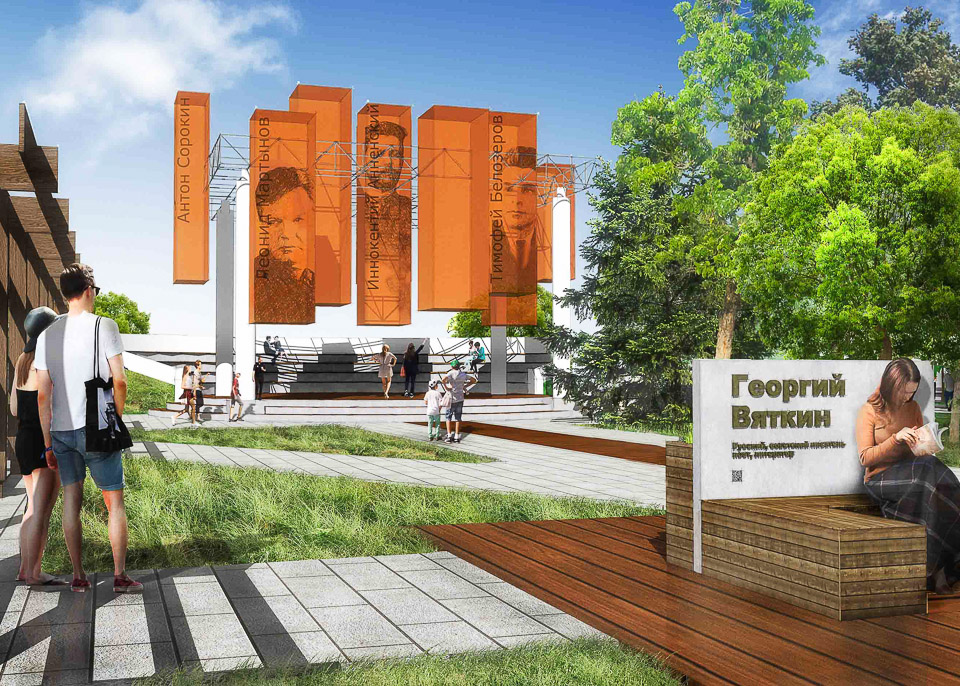 У коллектива архитекторов появилась смелая мысль — в рамках одной территории сформировать и удобный пешеходный транзит, и настоящий парк. Оригинальная уличная мебель, новые зеленые насаждения, оригинальные ландшафтные решения… Все это задумывается как знаковая форма нового прочтения городского памятного места, нового обозначения топонимической характеристики. Хорошая идея омских краеведов по увековечиванию памяти литераторов, чья жизнь и судьба пересеклась с жизнью Омска, получает в предлагаемой концепции свое дальнейшее развитие на новом качественном уровне.