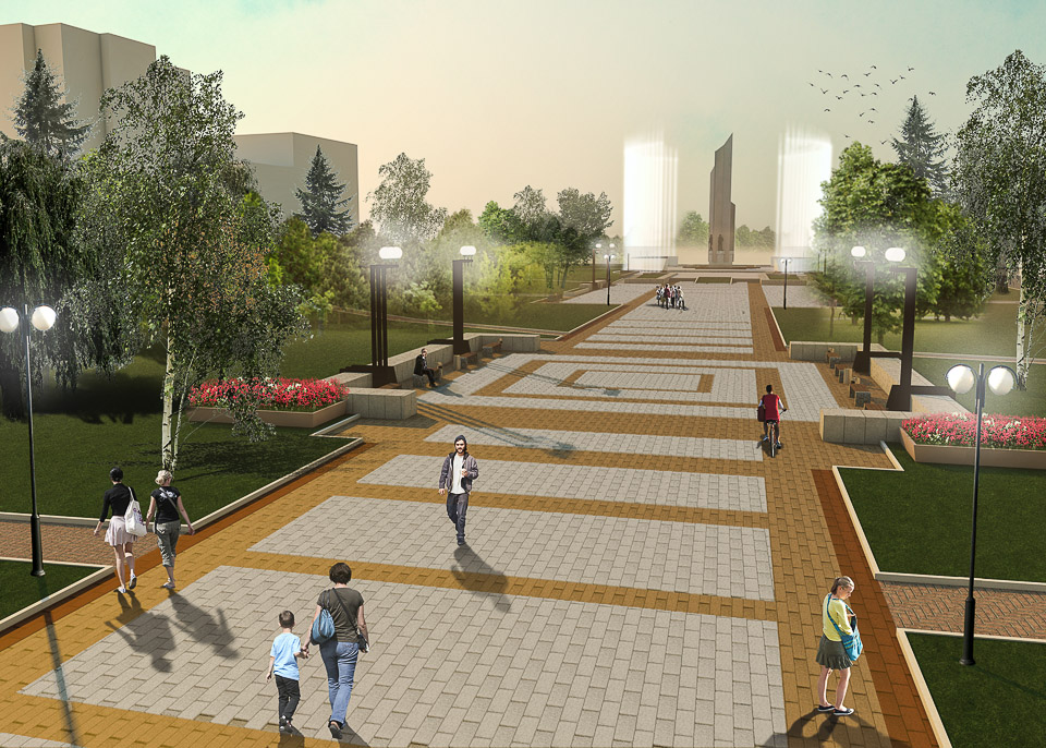 Что не устраивает горожан? Тротуары — разбитые, озеленение — хаотичное и явно недостаточное, пешеходная зона совсем не соответствует современным требованиям к безбарьерной среде. Все это учли при подготовке дизайн-проекта. Он решает две задачи: мемориальный комплекс благодаря найденным архитектурным решениям станет еще более величественным, и при этом горожане получат еще одно по-настоящему удобное и комфортное место для семейного отдыха с оригинальным освещением, удобными тротуарами и пешеходными дорожками. зеленый и тенистый сквер будет одинаково доступен и для инвалидов, и для матерей с колясками.
