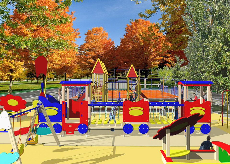Начать предлагается с обустройства входной группы. Затем в парке появится детская площадка, спортивные сооружения, пешеходные дорожки и тенистые аллеи.