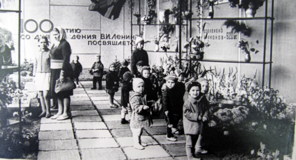 Вот и малыши-детсадовцы пришли поглазеть на цветочки. 1970