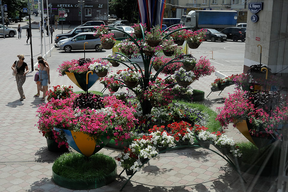 Каскад клумб на пересечении улиц Интернациональной и Герцена