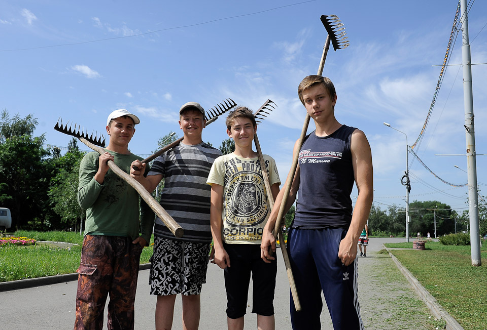 Школьники участвуют в благоустройстве и озеленении города во время каникул