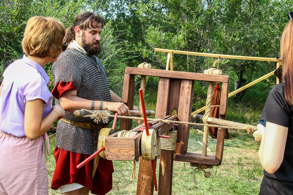 Управиться с луком, пожалуй, сложнее, но и здесь помогут и подскажут А это стрельба из римской баллисты, воссозданной со знанием дела Ценных исторических фактов столько, что надежнее вести видеозапись рассказов