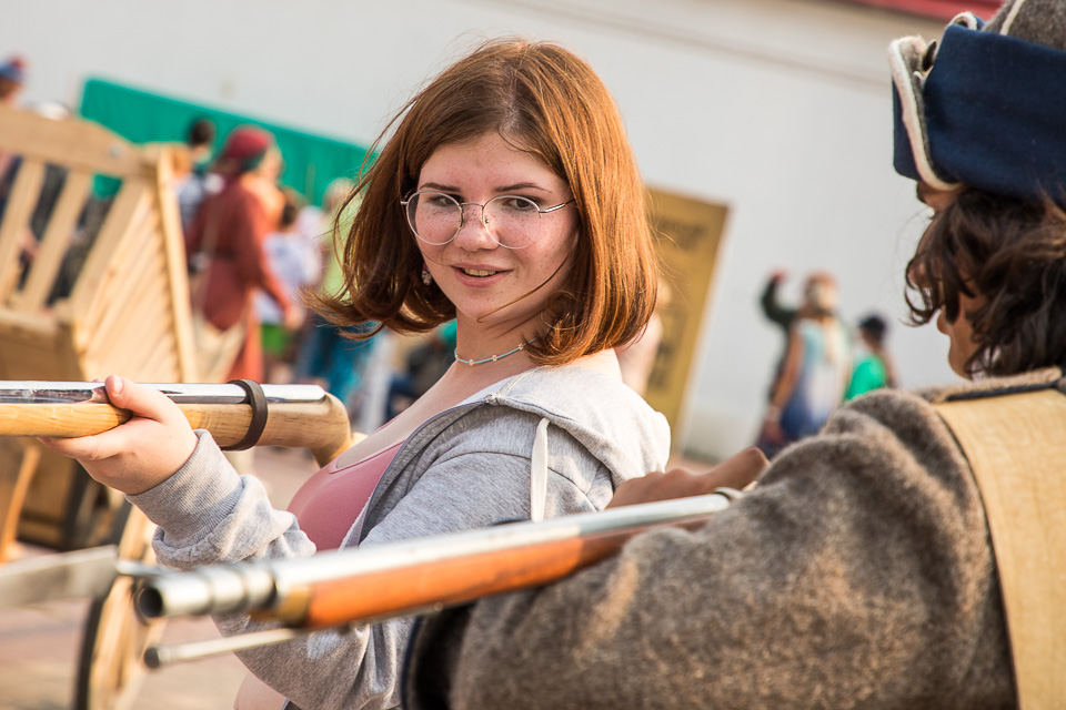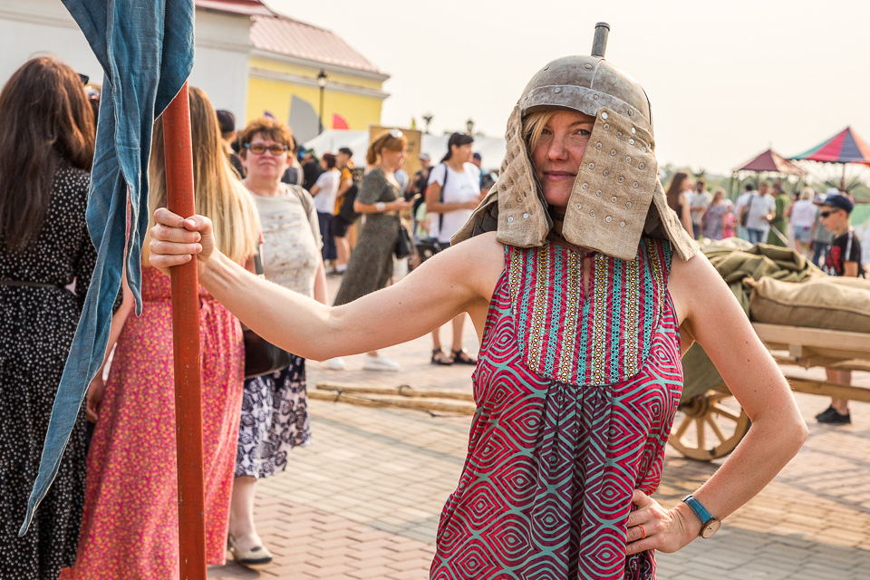 Восхищенные гости фестиваля аплодируют участникам реконструкции