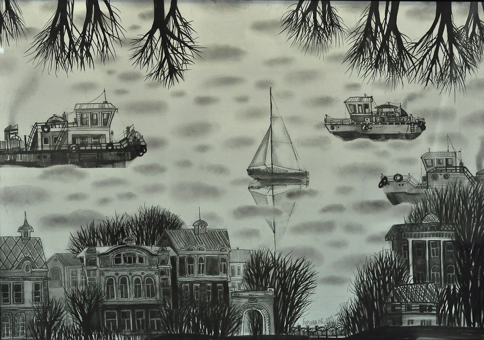Анастасия Гурова, 1978 г. р. Лист №1 из серии «Большая вода». 2015. Бумага, карандаш; 70×100. Третье место в категории «Графика»