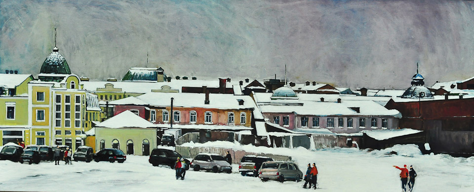 Иван Солодухин, 1950 г. р. Зимний день на Бударина. 2015. Холст, масло; 75×180. Второе место в категории «Живопись»