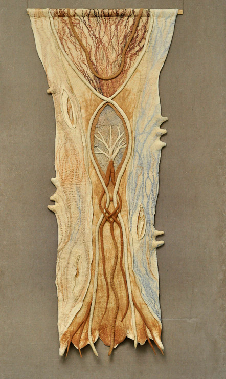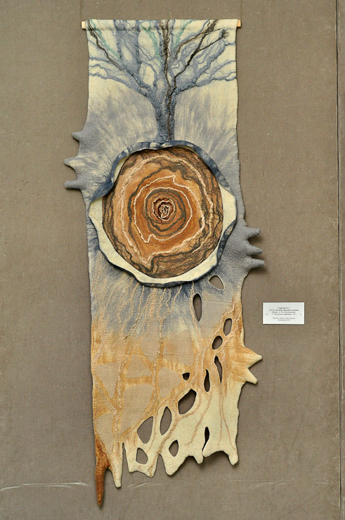 Юлия Терёхина, 1976 г. р. Диптих «Я знаю грядущее, я помню былое…». 2015. По стихотворению Л. Мартынова «Деревья». Фелтинг, шерсть, шелк, вискоза; 180×80; 170×70. Третье место в категории «Декоративно-прикладное искусство»