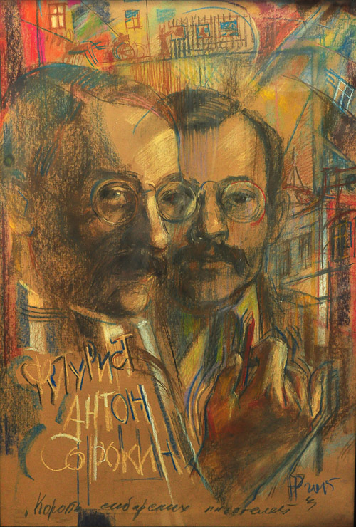 Расхат Нуриев, 1951 г. р. Художник Сорокин рисует поэта Сорокина. 2015. Бумага, пастель. 100×70. Главный приз Администрации города Омска за лучшее произведение