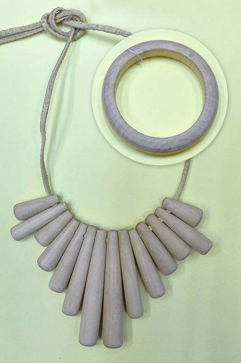 Людмила Долгушина (1946–2003). Комплект украшений «Березка». 1996. Береза, точение