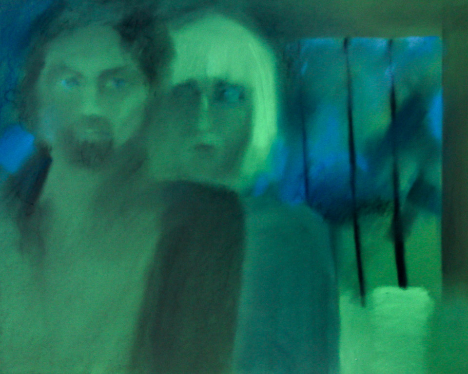Ольга Кошелева (1966 г.р.). Ночные гости (художники В. Глухов и Ю. Бондарович). 2012. Бумага, пастель