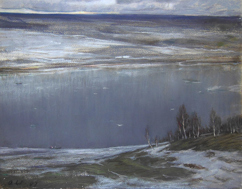 Алексей Либеров (1911–2001). Весна на Иртыше, или Лед пошел. 1987. Бумага, пастель