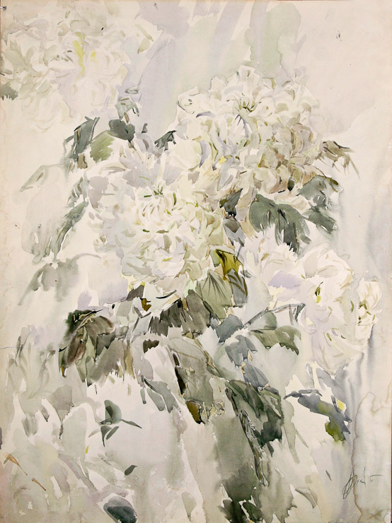 Наталья Пронина (1971 г.р.). Хризантемы. Бумага, акварель