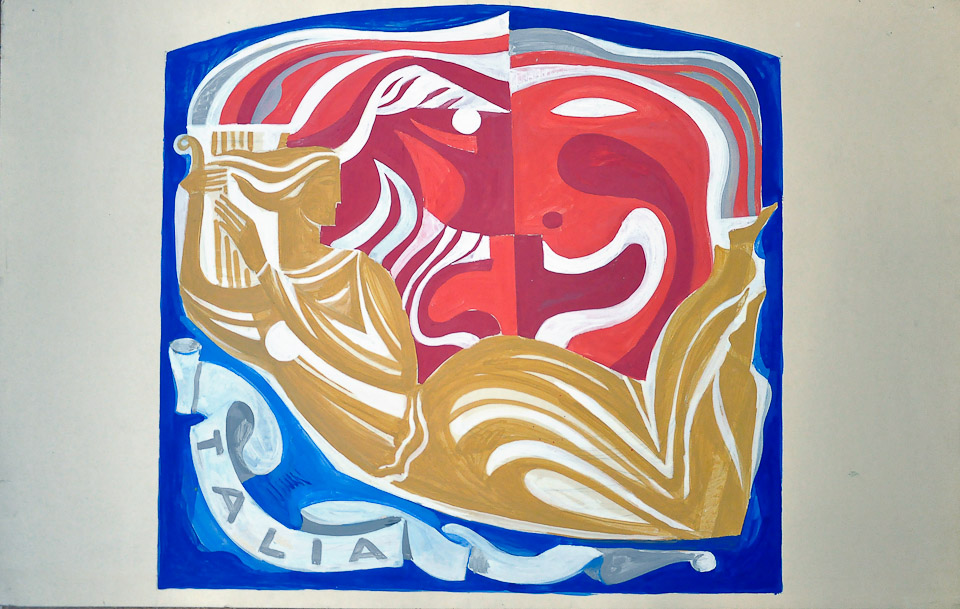 Михаил Слободин (1931–1990). Талия. Эскиз для витража Омской драмы. 1979. Бумага, темпера, картон