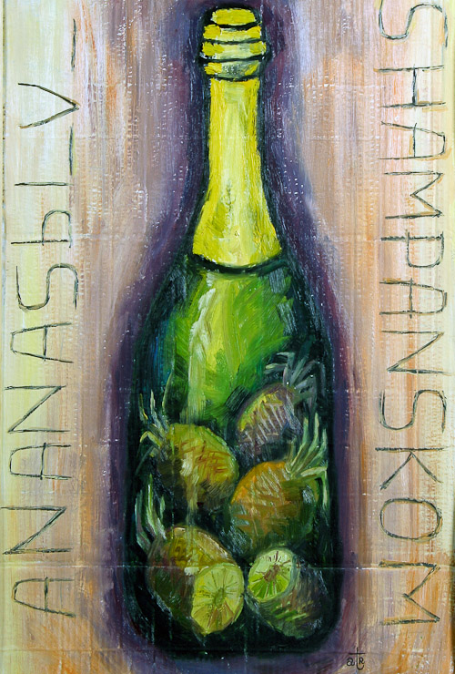 Анна Терешкина (1986 г.р.). Ананасы в шампанском. 2005. Гофрокартон, масло