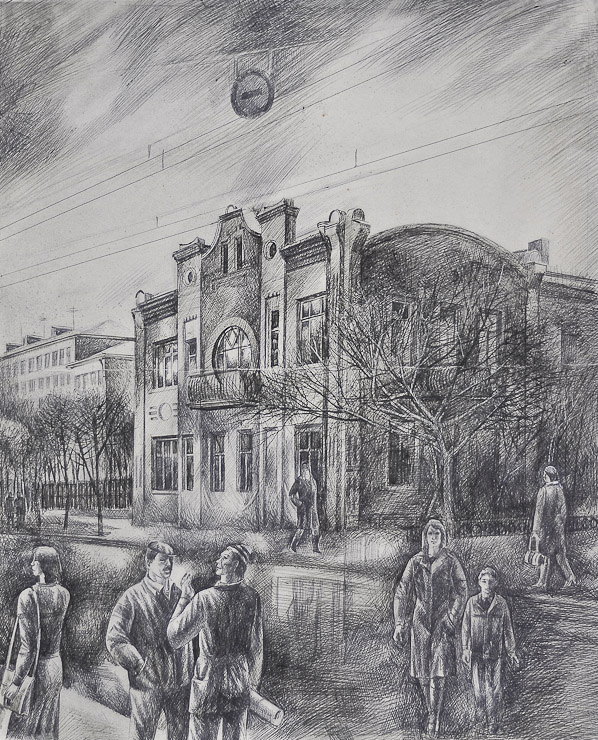 Петр Тышкевич. Омск. Библиотека им. А.С. Пушкина. Этюд. 1976. Бумага, акварель