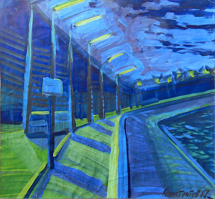 Владимир Калистратов. Иртышская набережная ночью. 1987. Бумага, гуашь