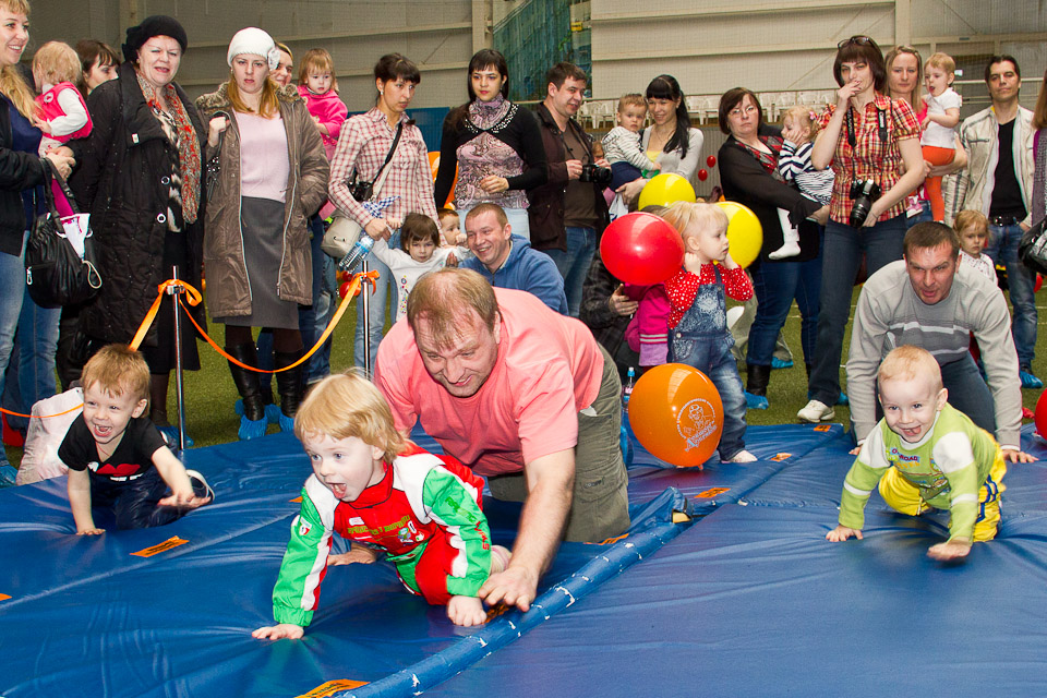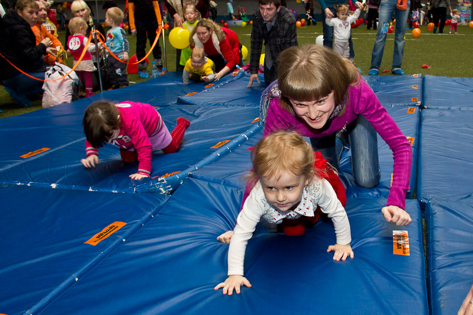 Пока малыши соревнуются в скорости, родители изо всех сил их поддерживают. Взрослым приходится и «запускать» бегунов на старте, и встречать на финише, потому что столь маленькие спринтеры пока не умеют надолго удерживать внимание и могут сойти с дистанции, заинтересовавшись чем-нибудь ярким или необычным за пределами беговой дорожки.