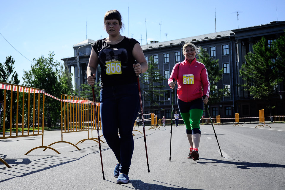 Мороженое от спонсоров для участников массового старта по скандинавской ходьбе