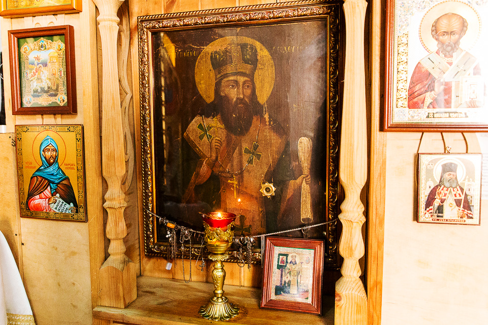 Стены храма и заалтарное пространство — настоящая сокровищница: икона Святого преподобного Феодора Санакарского