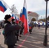 В ходе акции состоялись выступления творческих коллективов города В завершение события артисты встали в виде латинской буквы V, курсанты растянули полотнище с буквой Z, а студенты присоединились к композиции с флагами России.
