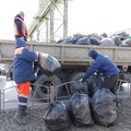 Полные мешки мусора складывалось вдоль дороги, а затем представители УДХБ грузили их в самосвал.