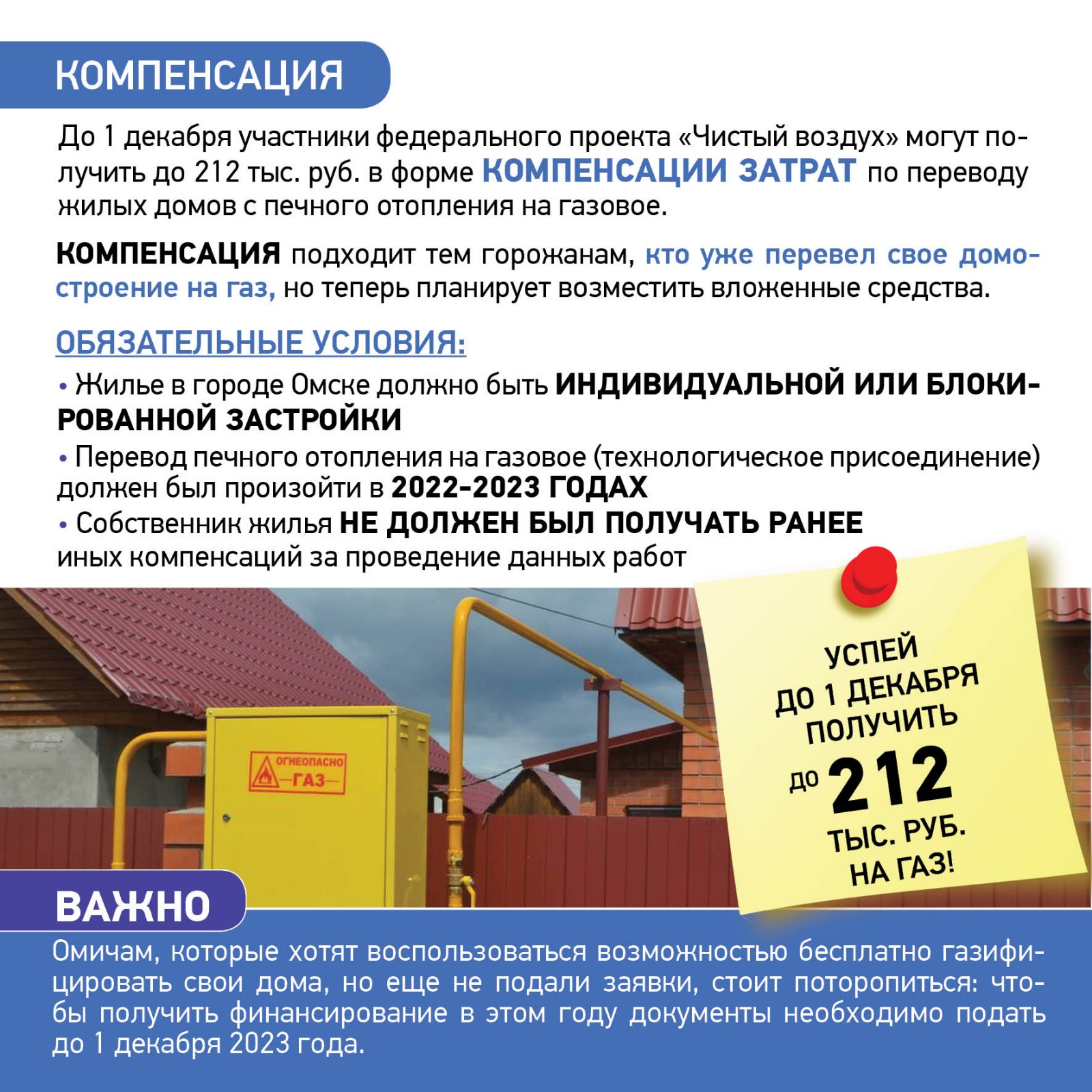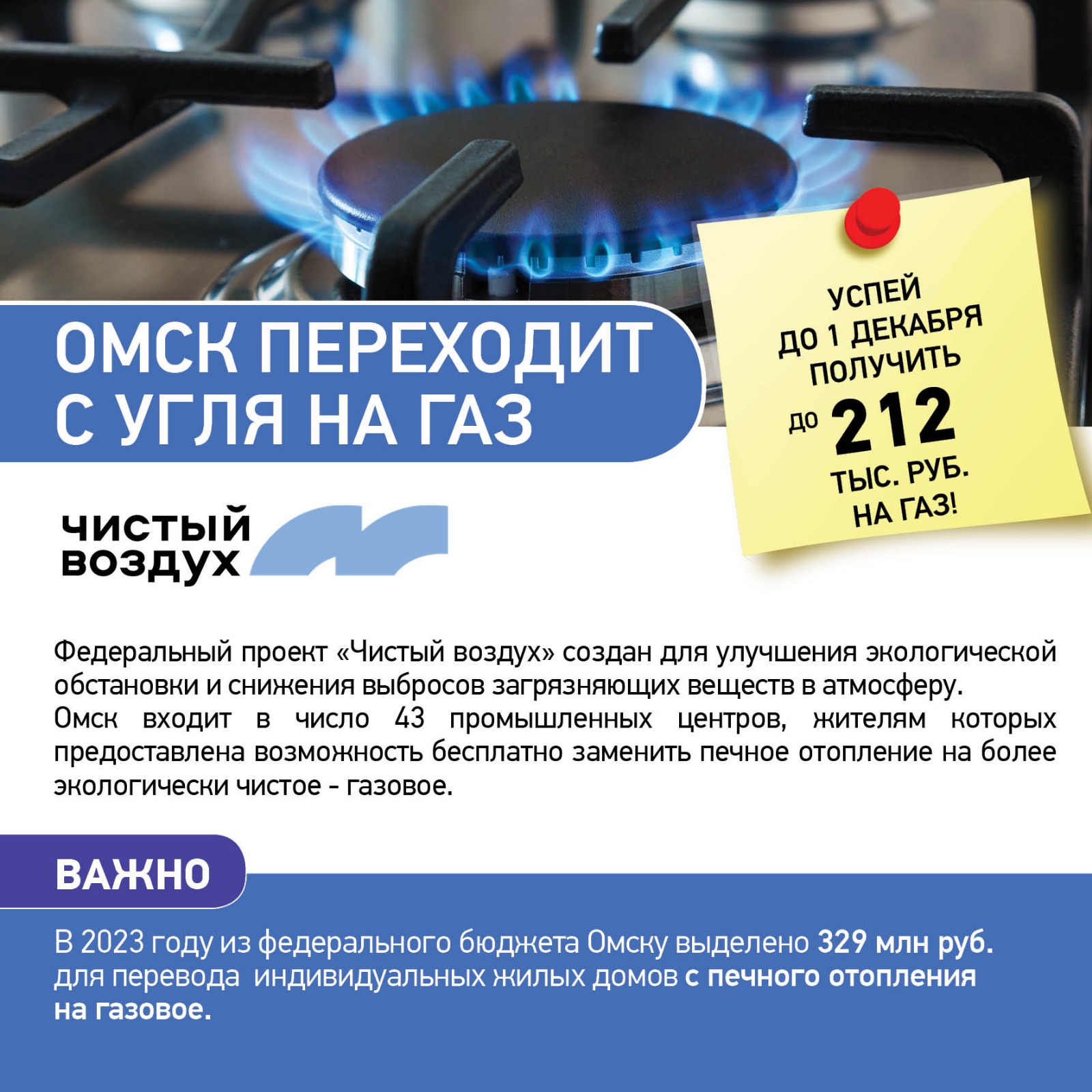 Напомним, федеральный проект «Чистый воздух» создан для улучшения экологической обстановки и снижения выбросов загрязняющих веществ в атмосферу. Комплексным планом мероприятий по снижению выбросов на реализацию мероприятия «Газификация частного сектора, расположенного в городе Омске» в 2023 году предусмотрено финансирование в объеме 329 млн руб. из федерального бюджета.