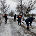 Управляющие компании Октябрьского округа убирают территории от снега и наледи