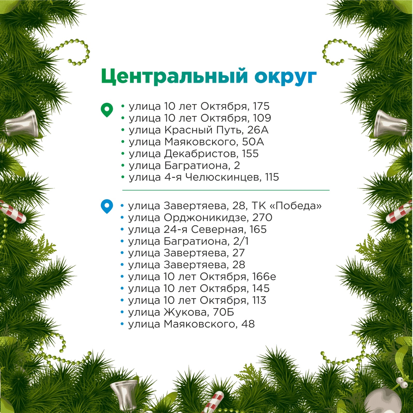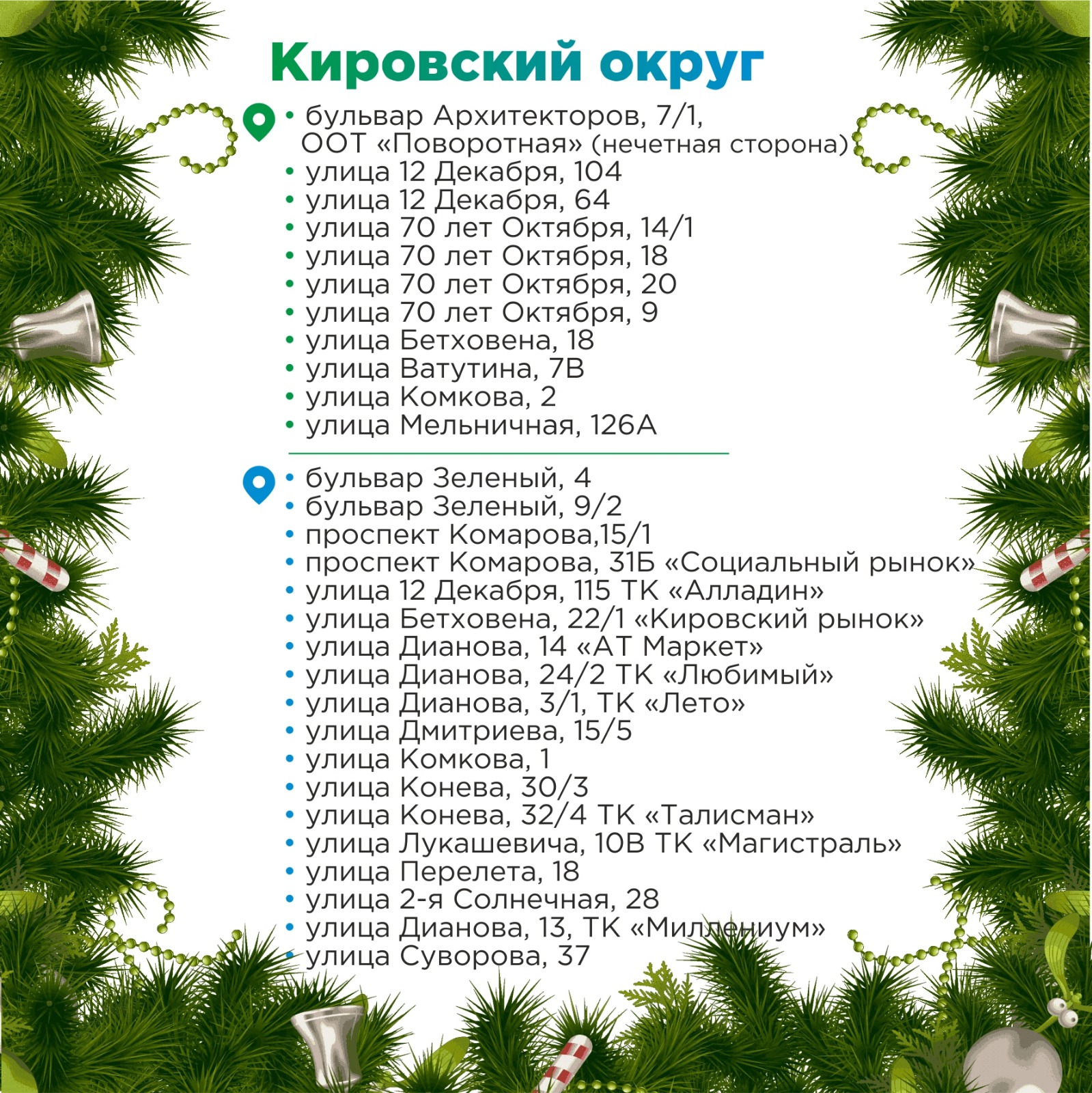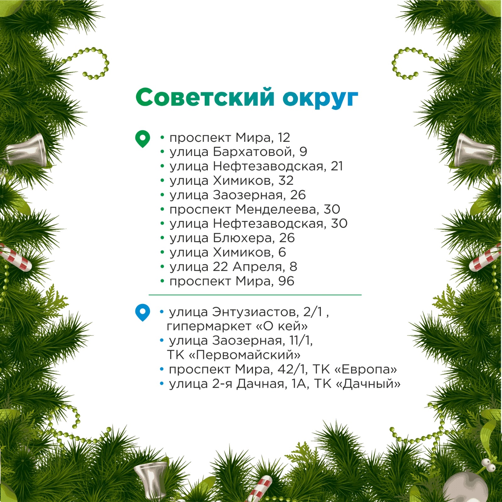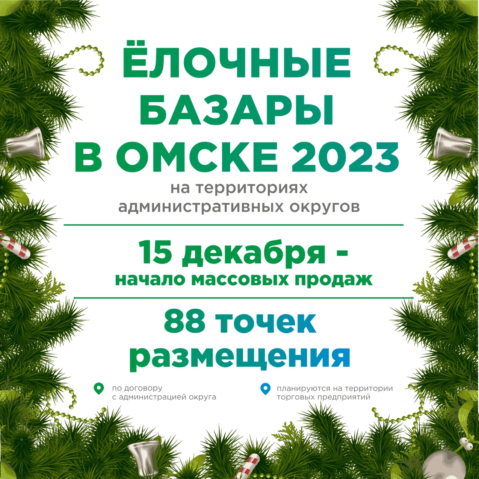 Часть точек реализации новогодних деревьев, гирлянд из веток и лапника организуется по инициативе администраций округов.