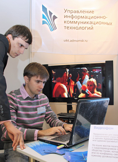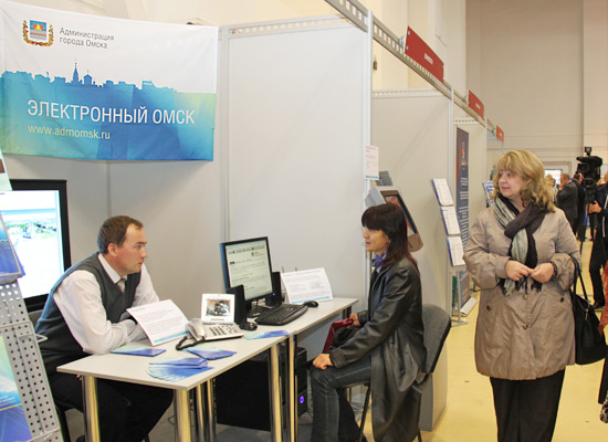 Администрация города Омска представила на выставке внедренные муниципалитетом информационные технологии, доступные для омичей. Среди них – официальный портал мэрии (с версией для слабовидящих людей), информационный киоск, видеофон, а также оборудованное рабочее место для инвалида по зрению.