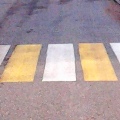 «Всего в Омске наш департамент планирует нанести бело-желтую «зебру» на 20 пешеходных переходах. Одной из причин для использования эмали желтого цвета при нанесении дорожной разметки 1.14.1 стало изменение в ГОСТ Р 52289-2004 «Технические средства организации дорожного движения. Правила применения дорожных знаков, разметки, светофоров, дорожных ограждений и направляющих устройств» от 26 февраля 2013 года, которое гласит, что между линиями данного типа разметки допускается окрашивать покрытие проезжей части краской желтого цвета», — пояснил заместитель директора департамента транспорта Вадим Кормилец.