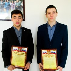 Дмитрий Зазулин и Максим Калайтан получили из рук главы окружной администрации благодарственные письма и памятные подарки.