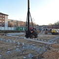 В настоящий момент ведется забивка свай. По информации департамента строительства администрации города, завершить нулевой цикл строительных работ, проводимых до уровня первого этажа, — устройство фундамента и цоколя, прокладка инженерных сетей — планируется до конца апреля, а к июлю строители обещают смонтировать стены двухэтажных зданий. Все кровельные работы запланированы уже на август.