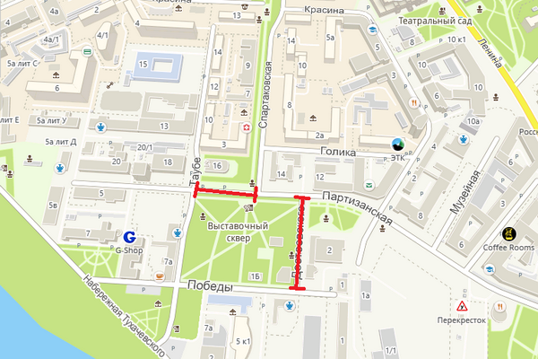 С 3 по 6 августа 2019 с 10:00 до 20:00 движение также будет ограничено по улице Достоевского — на участке от улицы Партизанской до улицы Победы, на улице Партизанской — на участке от улицы Спартаковской до улицы Таубе.