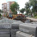 На объекте выполнены работы по сносу и кронированию аварийных деревьев. Скоро здесь будут высажены новые зеленые насаждения разных видов и пород. Размечены участки под детскую и спортивную площадки и зоны отдыха со скамейками и малыми архитектурными формами. В настоящее время подрядчик занимается обустройством тропиночной сети и центральной площадки — это большой объем работ. Уже установлен поребрик, завезен и засыпан щебень. Продолжается подготовка под укладку тротуарной плитки.