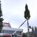 Главную городскую ель устанавливают на Театральной площади перед Музыкальным театром специалисты хозяйственно-эксплуатационного центра «Творчество», подведомственного департаменту культуры мэрии.