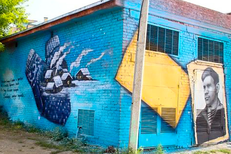 В августе здесь появились литературные открытки с портретами Тимофея Белозерова и Роберта Рождественского, строками из стихотворений поэтов и иллюстрациями к ним. Так известный омский граффитист Дмитрий Трайп поздравил город с днем рождения.