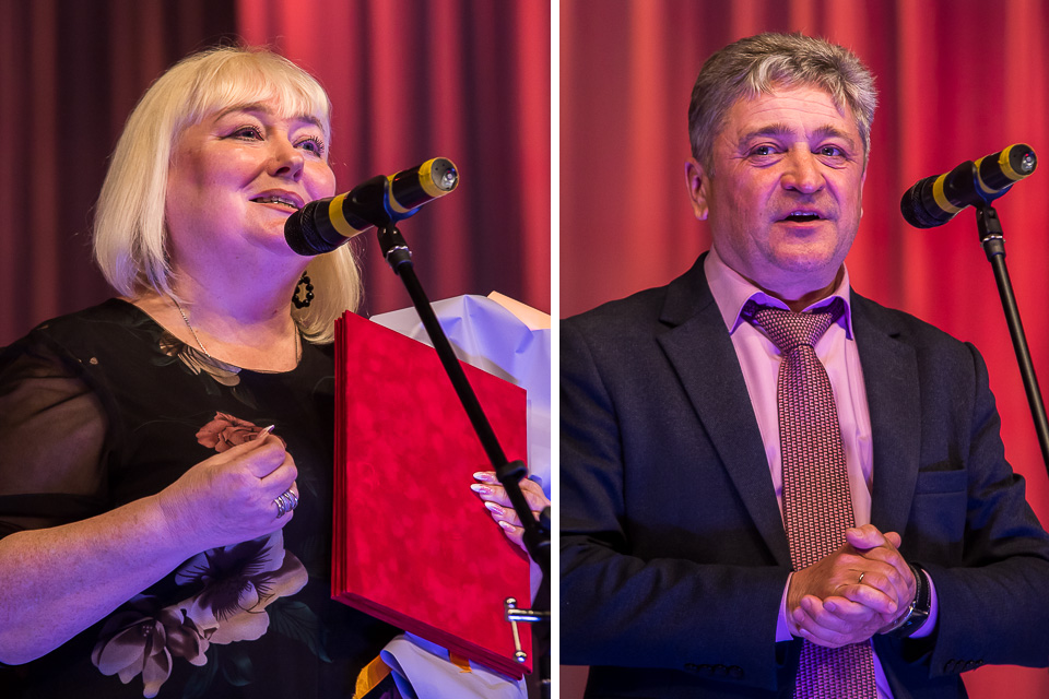 От лица мэра поздравляет Олег Федоренко, от лица спикера горсовета — Светлана Студеникина