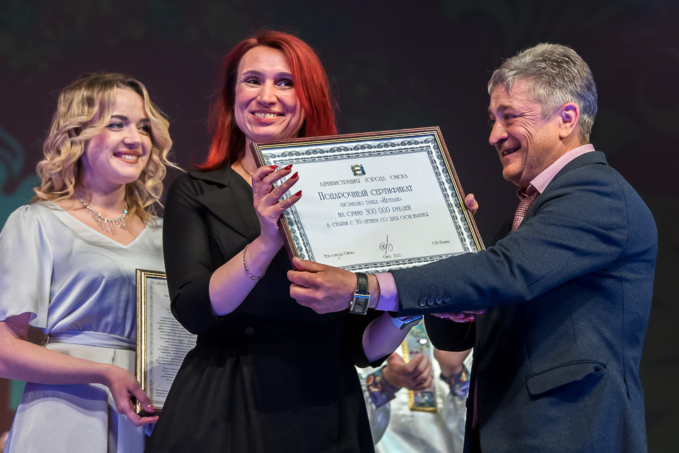 И.о. директора департамента культуры также вручил коллективу подарочный сертификат