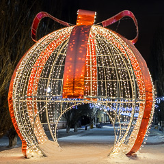 Уже известный нам гигантский шар — новогодняя доминанта улицы Спартаковской
