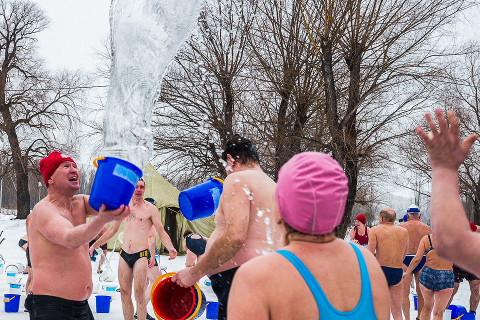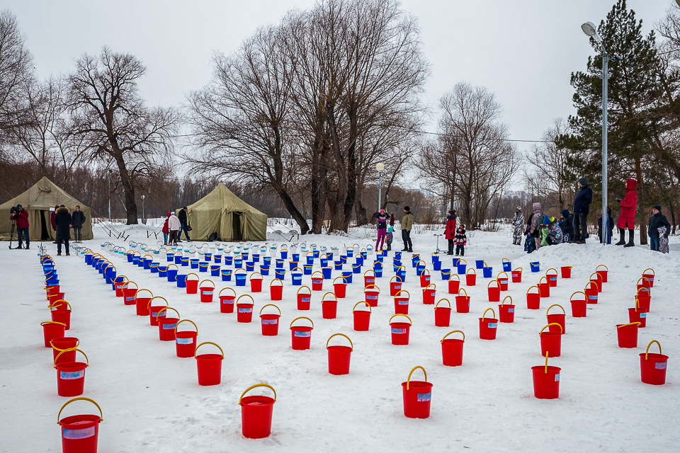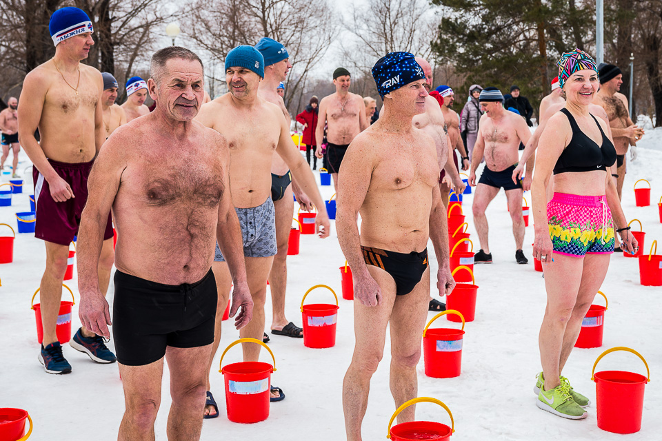 Ставшая традиционной акция «Пробуждение» вновь собрала десятки любителей закаливания. По команде Евгения Житнова, руководителя клуба «Моржи», они одновременно опрокинули на себя ведра с холодной водой, таким образом символично прощаясь с зимой и заряжаясь весенней бодростью.