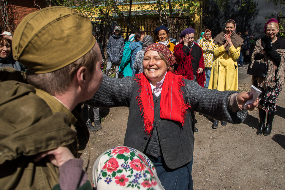 Необычную предпраздничную программу к 9 Мая представили омское отделение военно-исторического клуба «Наследие», КДЦ «Иртыш» и студия «Скворечник»: после митинга у стелы погибшим на войне выпускникам и учащимся школы № 37 во дворе старинных слободских домов по улице Почтовой прошел камерный театрализованный концерт «Встречай Победу».