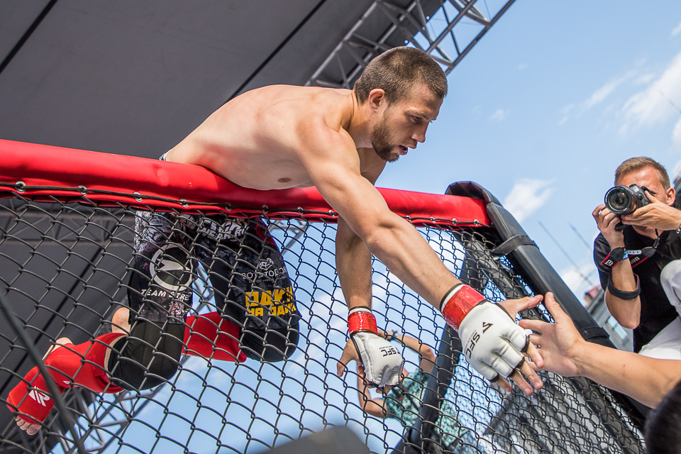 В самом центре Соборной площади установлен октагон Здесь идет гран-при по MMA среди любителей Успех обязательно нужно разделить со своей командой