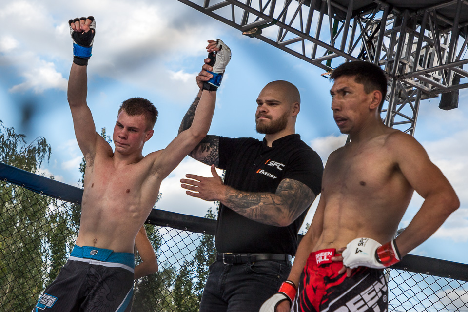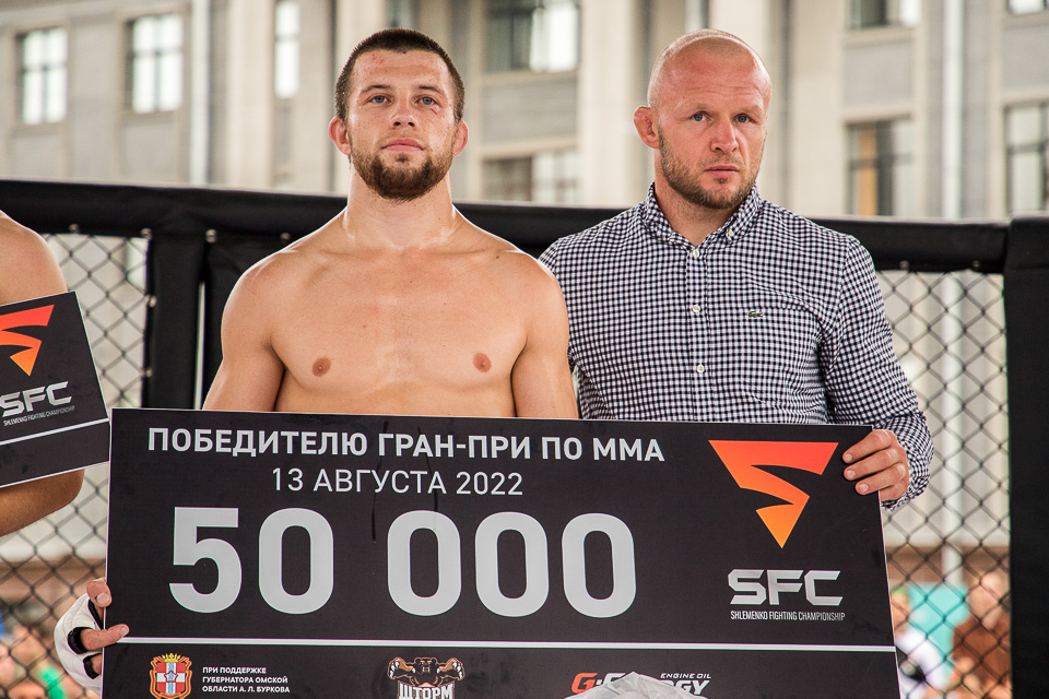 И вот стартует долгожданный финал! Бой продлился недолго: преимущество лучшего спортсмена было очевидно Приз победителю соревнований вручил лично Александр Шлеменко