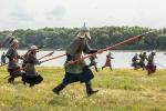 Восхищенные гости фестиваля аплодируют участникам реконструкции