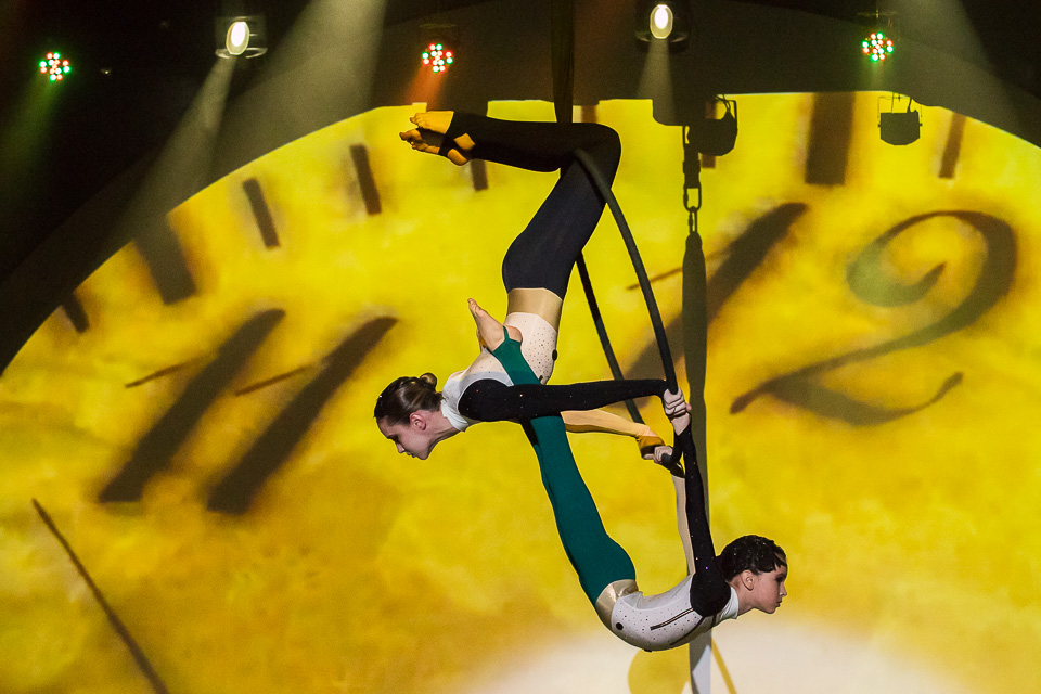 Девушки в этом номере — словно маленькие стрелки гигантских часов