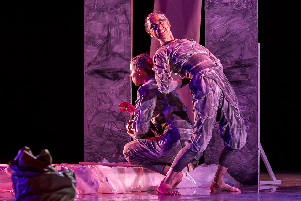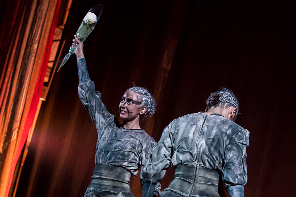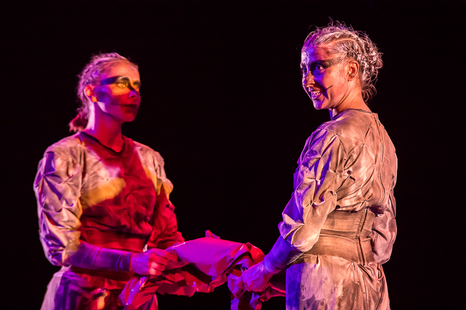 По сюжету два мифических существа делятся с миром простыми и всегда актуальными истинами. Народные сказки в их исполнении звучат целиком, будто читаются прямо из книги: это и слова автора, и прямая речь персонажей. При этом пластика, мимика, интонации рассказчиц ни на секунду не дают оторваться от происходящего на сцене, с головой погружая зрителей в магию театрального искусства.