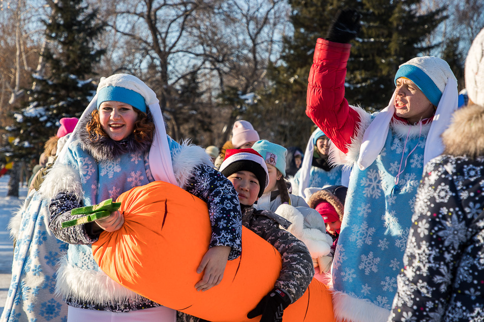 Так называлась новогодняя концертно-игровая программа, которую в солнечный выходной в сквере имени Дзержинского провели муниципальные творческие коллективы: ансамбли танца «Иртыш» и «Русь», а также артисты ГДКИ имени Красной гвардии и КДЦ «Меридиан».
