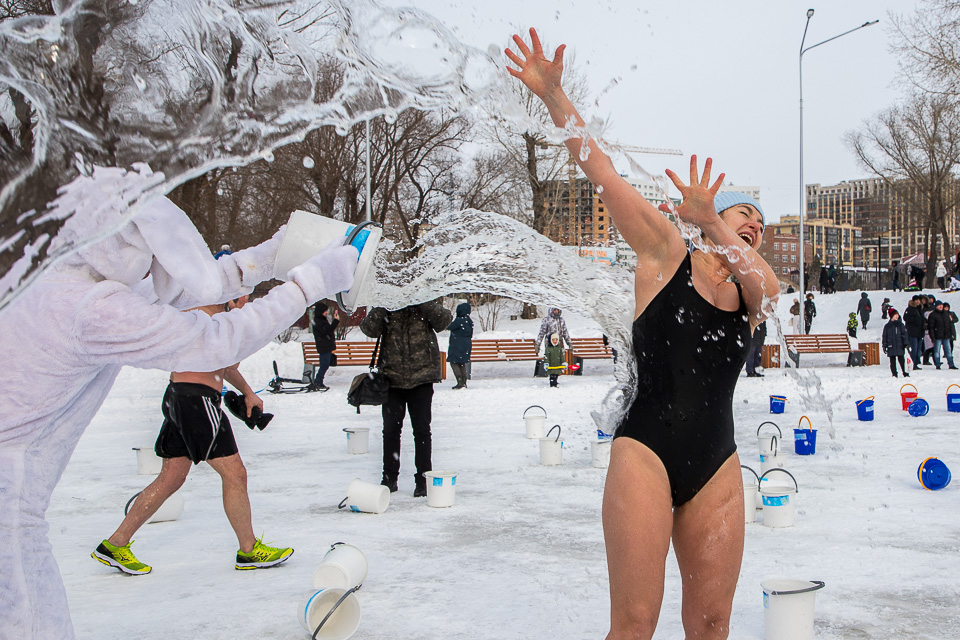 Встретить весну и остаться сухими? Это немыслимо для активных участников клуба закаливания и зимнего плавания «Омские моржи»! Ежегодная акция по массовому обливанию холодной водой вновь состоялась в парке «Зеленый остров».