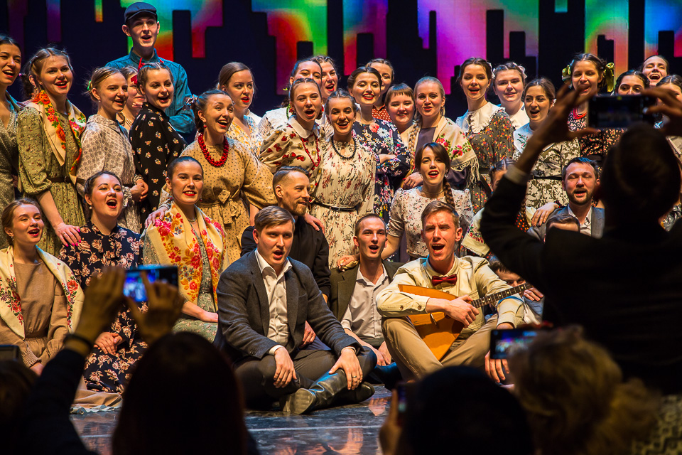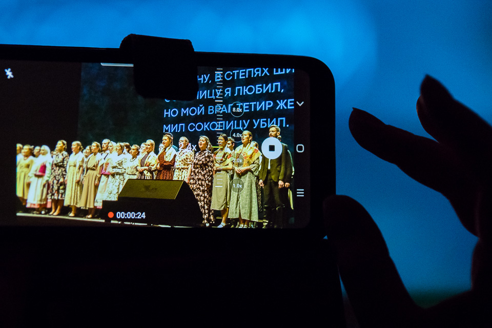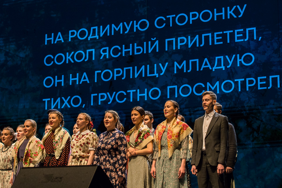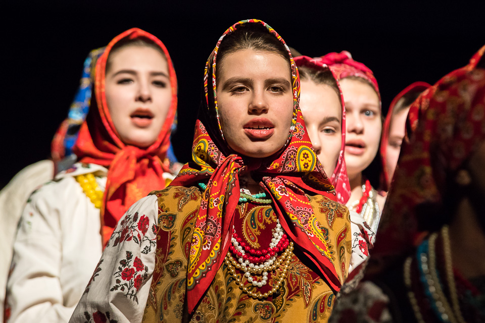 Финальная часть представления — песни канадских духоборов: зал может подпевать